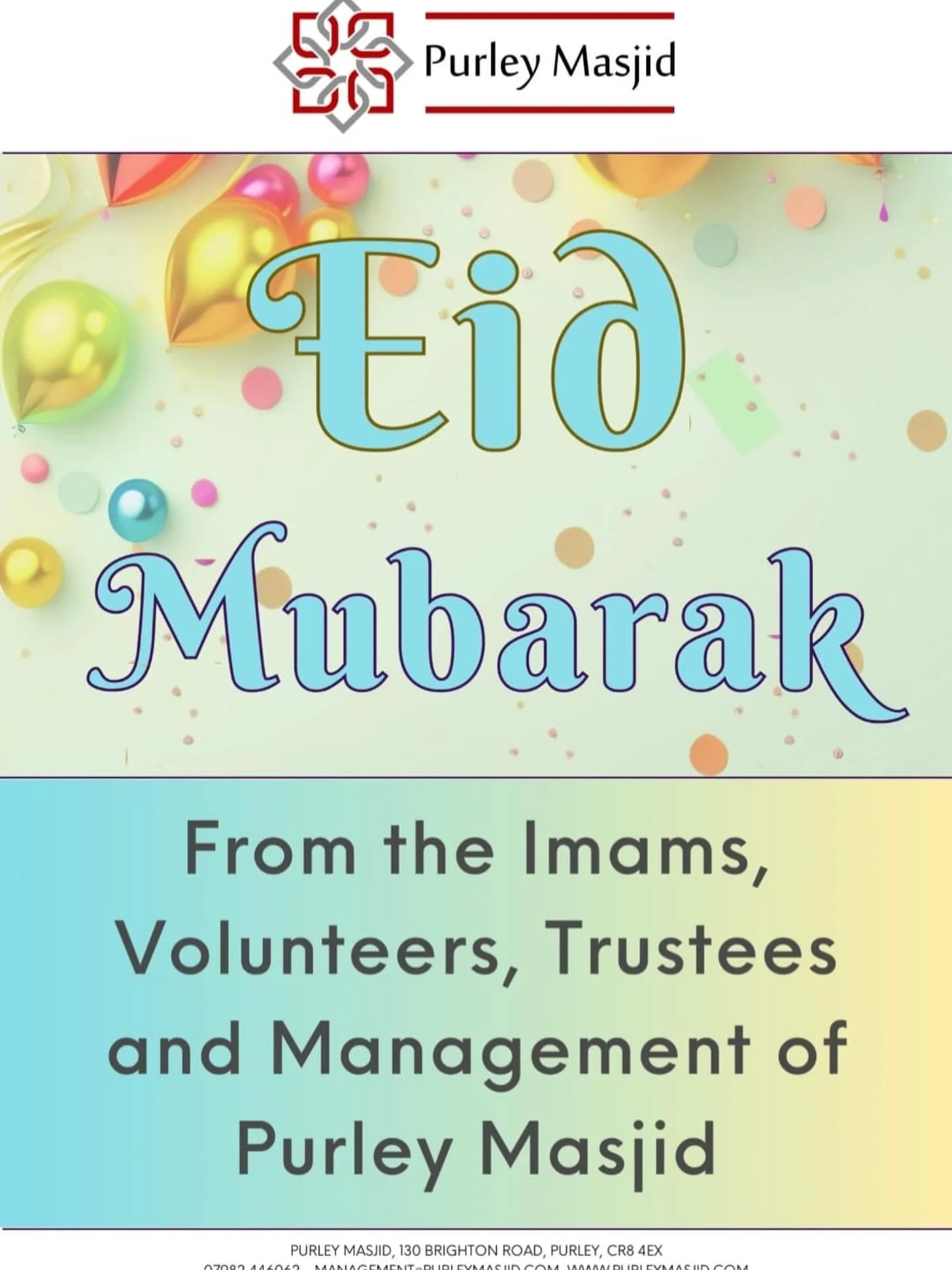 To receive updates, notifications and announcements for lectures, new initiatives, classes, Eid, Ramadhan, please join the Purley Masjid Community Group by clicking on the following link: Join Purley Masjid Community Group
